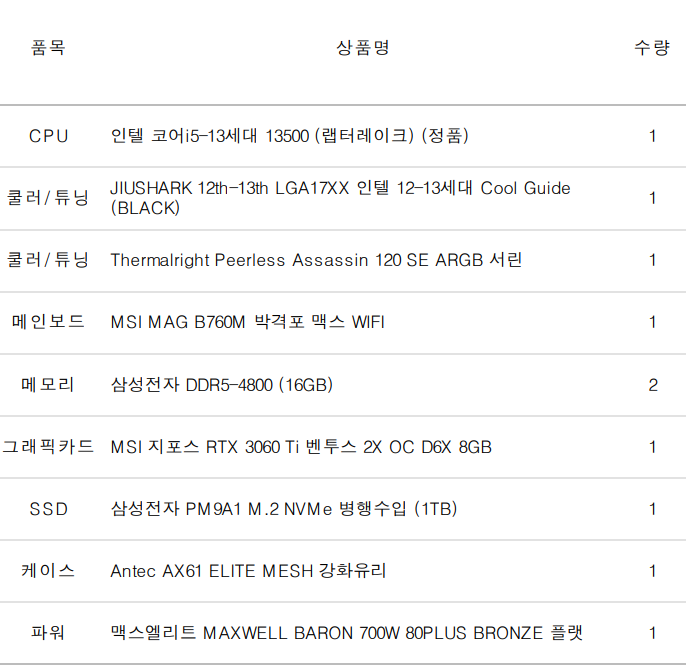 완제 컴퓨터가 아닌 부품의 변경이나 케이스변경 등