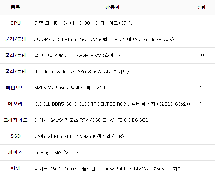 완제 컴퓨터가 아닌 부품의 변경이나 케이스변경 등