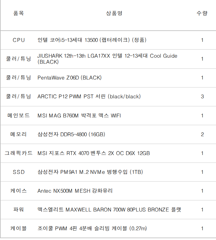 조동희님의 RTX 4070 게이밍 컴퓨터