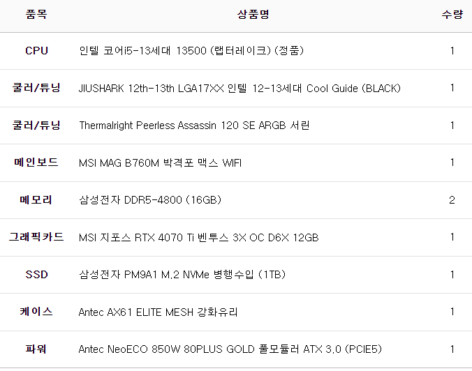 완제 컴퓨터가 아닌 부품의 변경이나 케이스변경 등