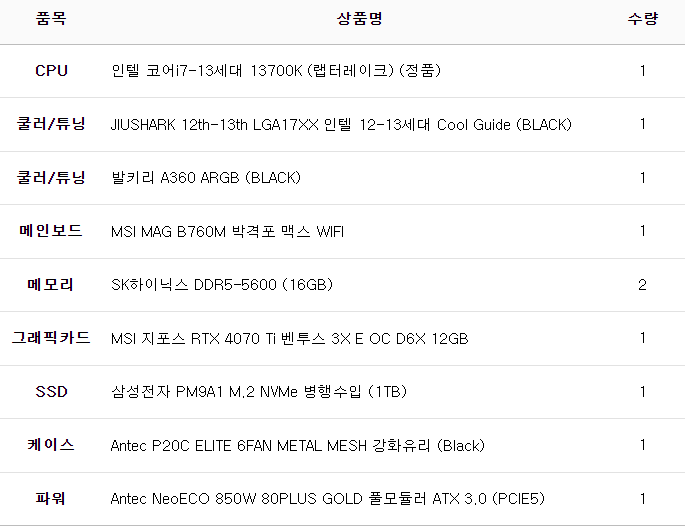 완제 컴퓨터가 아닌 부품의 변경이나 케이스변경 등