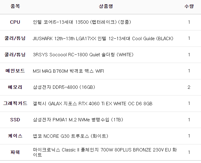 장형진님의 4060ti 화이트 컴퓨터