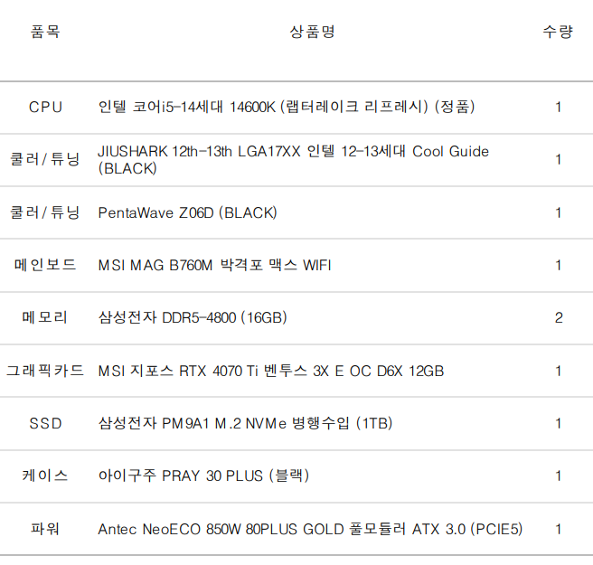 이종민님의 4070Ti 게이밍 컴퓨터
