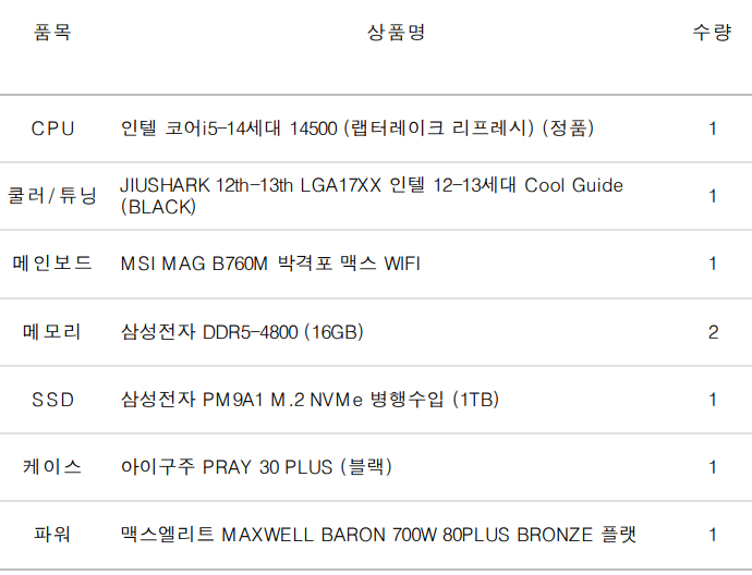 완제 컴퓨터가 아닌 부품의 변경이나 케이스변경 등