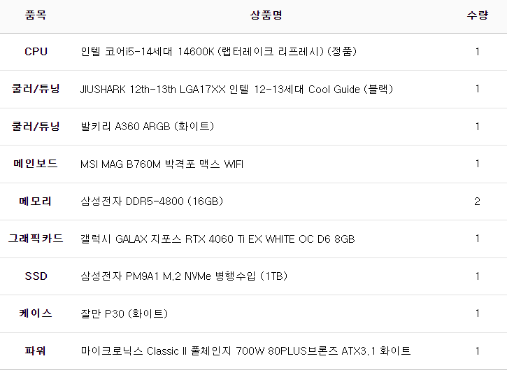 완제 컴퓨터가 아닌 부품의 변경이나 케이스변경 등
