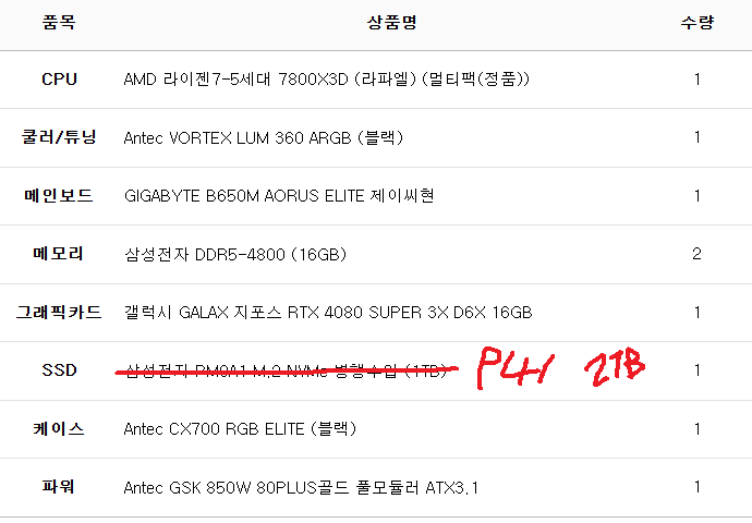 완제 컴퓨터가 아닌 부품의 변경이나 케이스변경 등