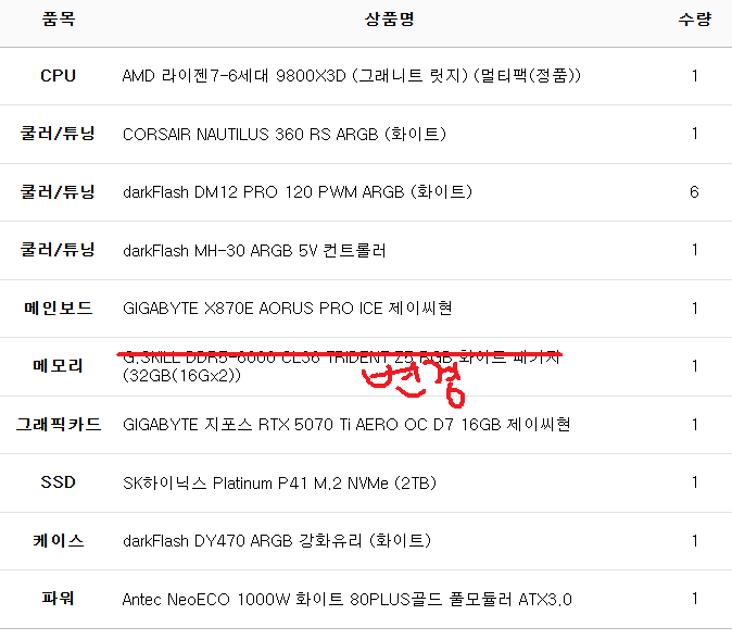 완제 컴퓨터가 아닌 부품의 변경이나 케이스변경 등