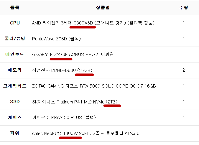 완제 컴퓨터가 아닌 부품의 변경이나 케이스변경 등