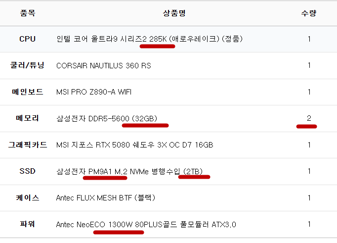 완제 컴퓨터가 아닌 부품의 변경이나 케이스변경 등