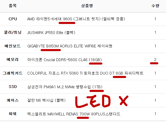 완제 컴퓨터가 아닌 부품의 변경이나 케이스변경 등