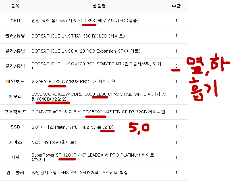 완제 컴퓨터가 아닌 부품의 변경이나 케이스변경 등