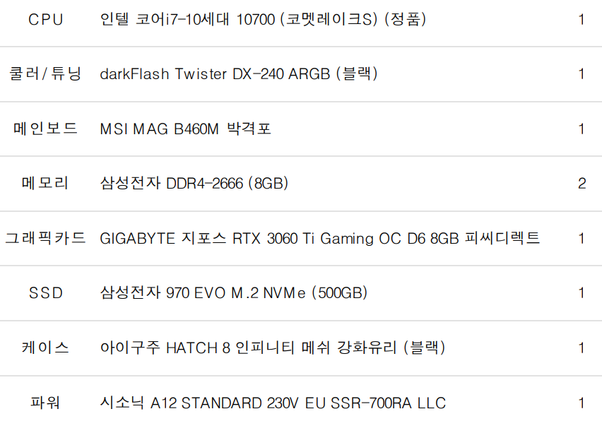 서민석님의 RTX3060TI 컴퓨터