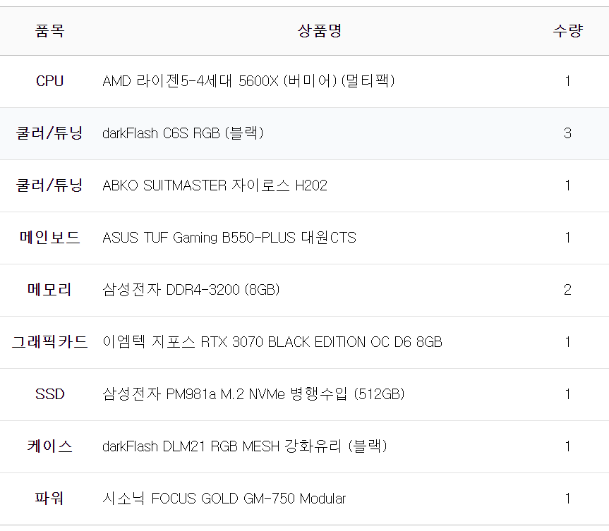 완제 컴퓨터가 아닌 부품의 변경이나 케이스변경 등
