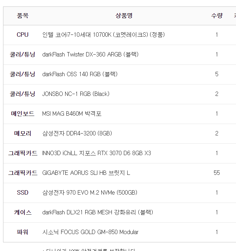 완제 컴퓨터가 아닌 부품의 변경이나 케이스변경 등