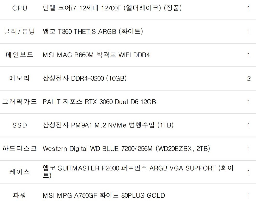 완제 컴퓨터가 아닌 부품의 변경이나 케이스변경 등
